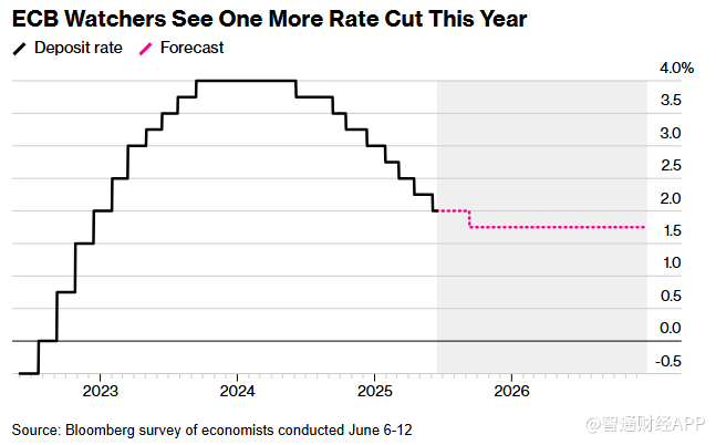 由于欧元走强和能源成本下降,欧洲央行工作人员将明年的通胀预期下调至1.6%。Bloomberg调查的受访者维持了消费者价格指数将进一步上涨的预测,2026年的通胀预期仍为1.9%。
