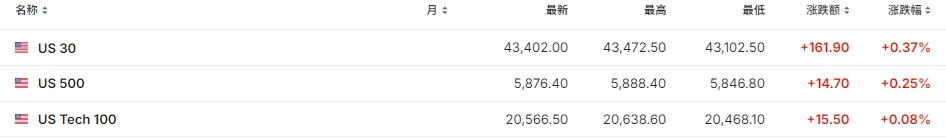 道指期货涨0.37%,标普500指数期货涨0.25%,纳斯达克100指数期货涨0.08%。