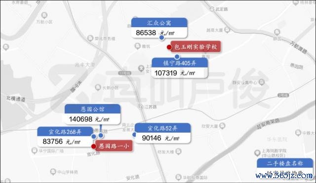 愚园路一小的对口小区,即使是老破小单价也在 10 万元 /㎡左右,而包玉刚实验学校周边老小区则很难卖到 10 万 /㎡以上。这些小区的业主与走国际路线的学生家长不是同一客群,也很难带动周边房价的增长。
