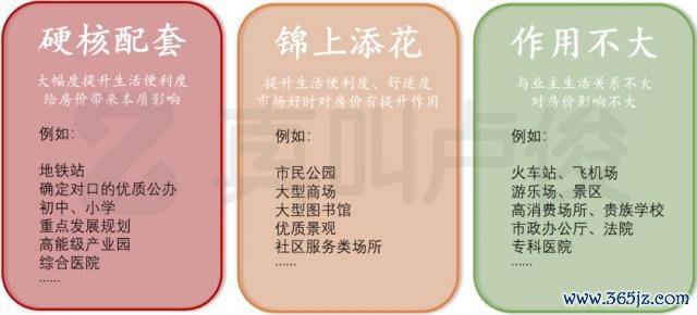 我们整理了下面一图,简单区分各类配套的服务能级。